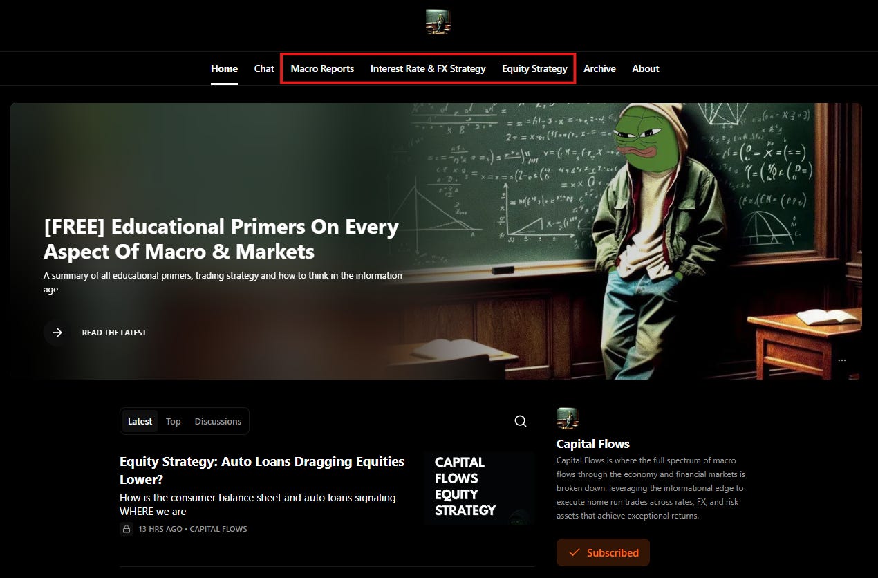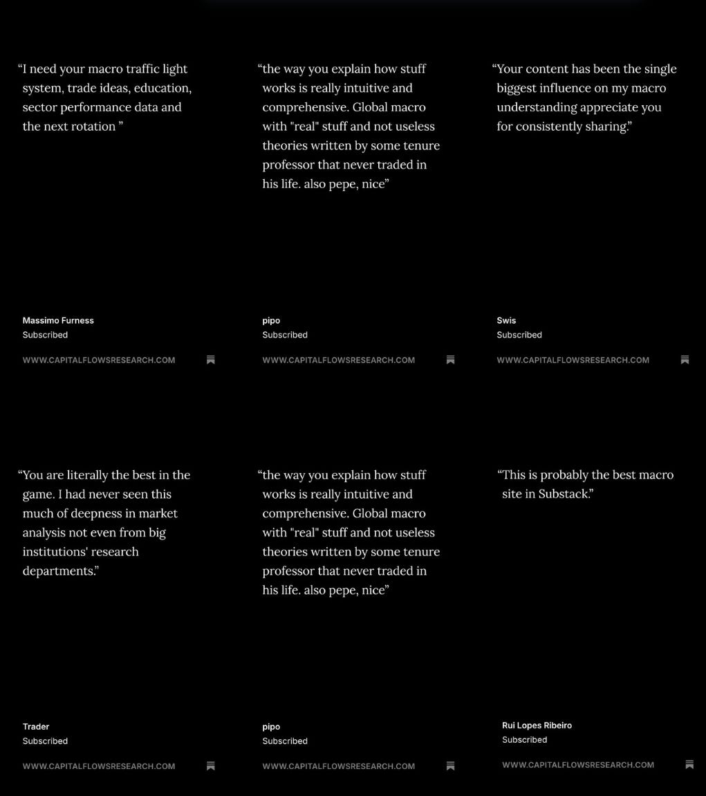 The information on this website/Substack is for information purposes only. It is believed to be reliable, but Capital Flows does not warrant its completeness or accuracy. The information on the website/Substack is not intended as an offer or solicitation for the purchase of stock or any financial instrument. The information and materials contained in these pages and the terms, conditions and descriptions that appear, are subject to change without notice. Unauthorized use of Capital Flows websites and systems including but not limited to data scraping, unauthorized entry into Capital Flows systems, misuse of passwords, or misuse of any information posted on a site is strictly prohibited. Your eligibility for particular services is subject to final determination by Capital Flows and/or its affiliates. Investment services are not bank deposits or insured by the FDIC or other entity and are subject to investment risks, including possible loss of principal amount invested. Your use of any information which is proprietary to Capital Flows or a third-party information provider shall only be used on individual devices without any right to redistribute, upload, export, copy, or otherwise transfer the information to any centralized interdepartmental or shared device, directory, database or other repository nor to otherwise make it available to any other entity/person/third party, without the prior written consent of Capital Flows.