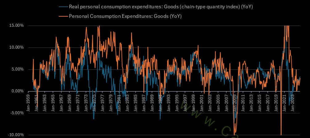 Watching both nominal and real numbers in consumption directly informs the degree of growth and inflation taking place in the macro regime.