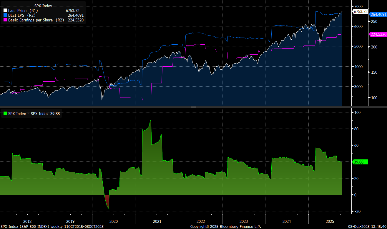 Earnings expectations remain ABOVE realized earnings, but we are seeing a consistent expansion in both: