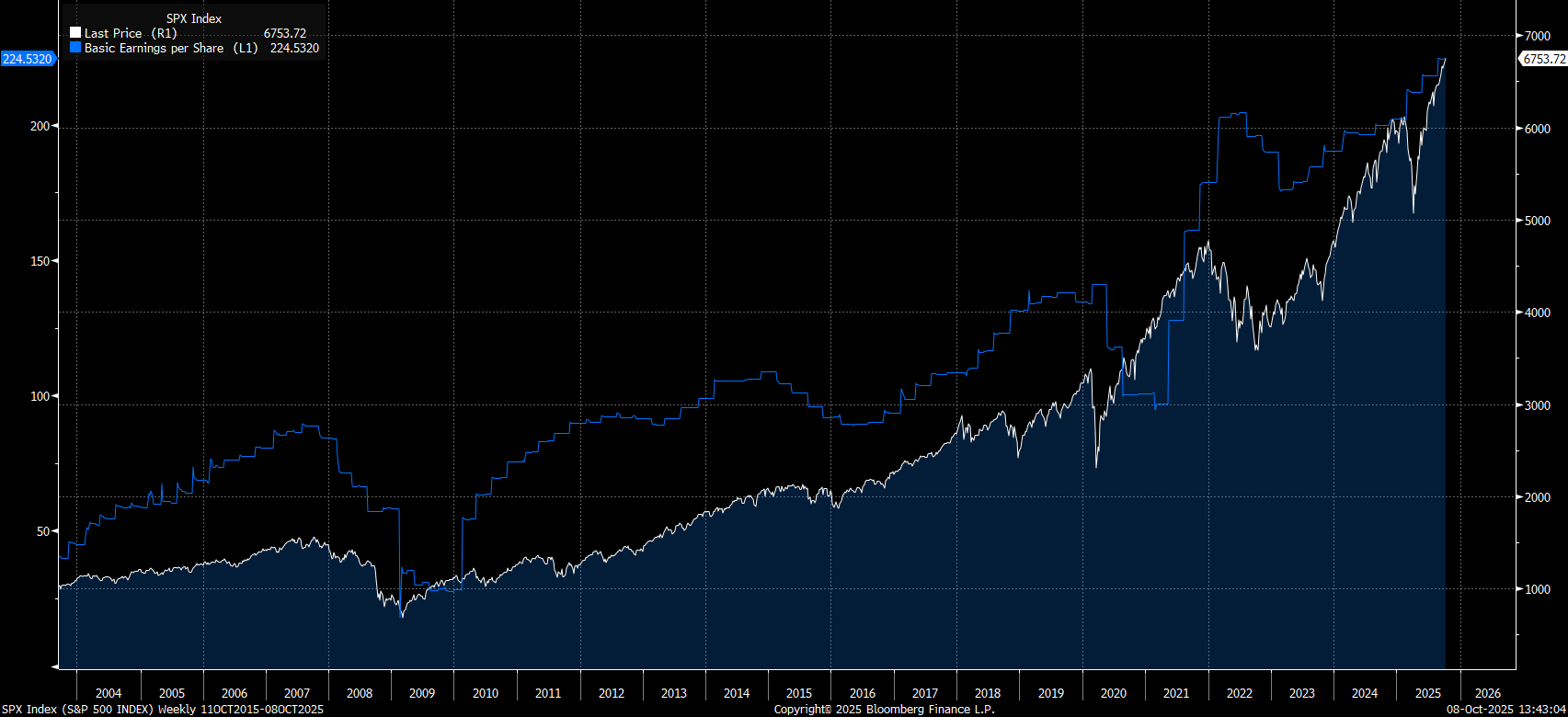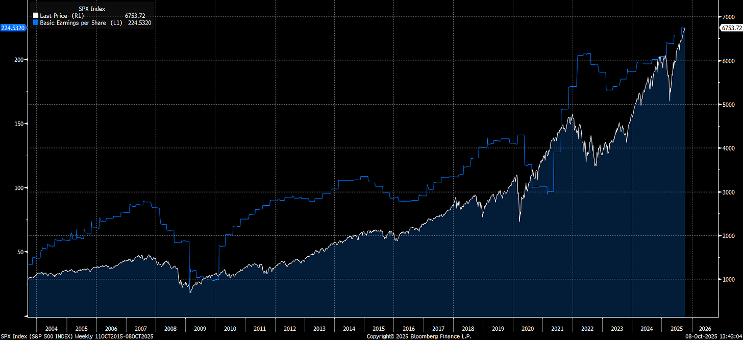 Earnings in the S&P500 continue to rise on a consistent basis as nominal and real growth accelerate: