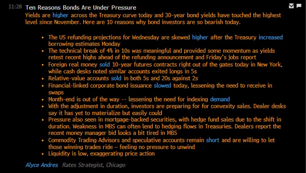 A lot of people are focusing on the ISM data and think bonds should be bidding. Here is the deal, if bonds are falling on a decelerating ISM print, that tells me the inflationary impulse in markets remains stronger than any negative growth prints.