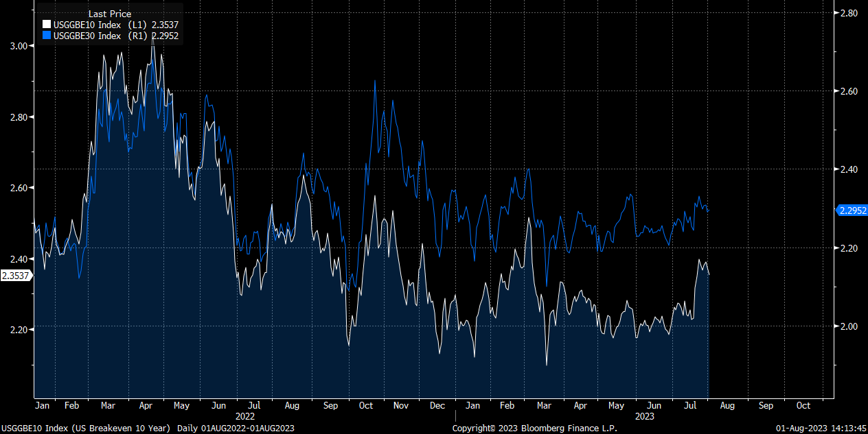 However, 10-year and 30-year breakevens have been rising marginally: