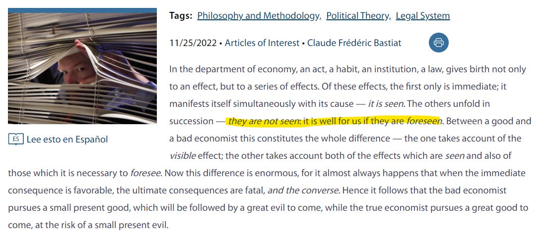 One of the most important ideas in financial markets comes from a pivot paper by Claude Frédéric Bastiat called “That Which Is Seen, and That Which Is Not Seen.”
