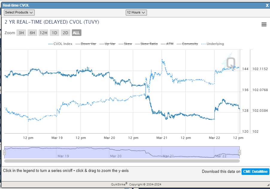 The 2-year and its implied vol remains a key asset of focus since FOMC. The reason I originally got long the 2-year before FOMC (link) was because we were perfectly pricing what was SEEN on the dot plot. The market wasn’t having foresight on what is UNSEEN.
