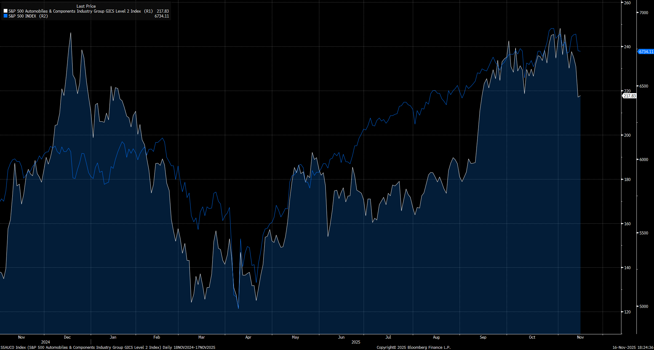 The auto sector of the S&P500 has led the way to the downside in the recent pullback from all time highs.