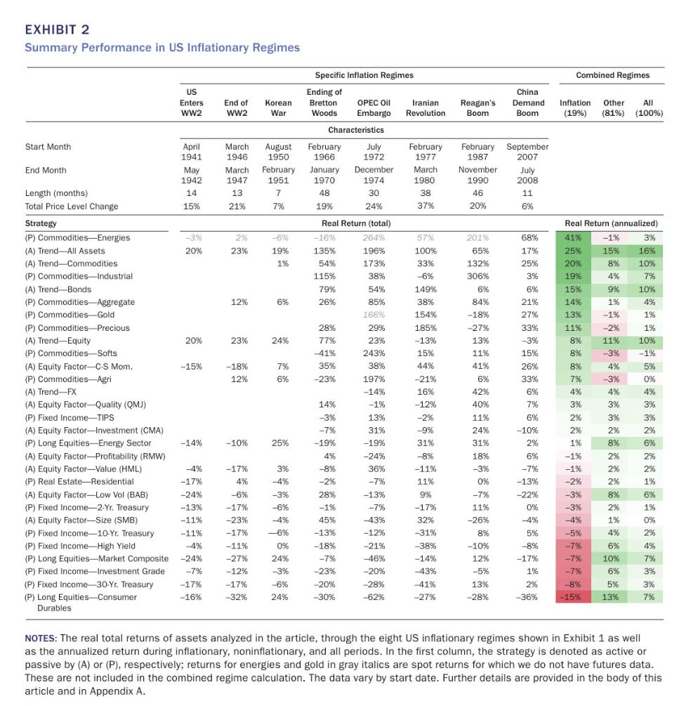 Understanding that inflation risk is GREATER than recession risk contextualizes ALL action for asset moves over the next 3 months. The distribution of returns for all assets is directly linked to WHERE we are in the macro regime. AQR has a great visual on this in its paper: