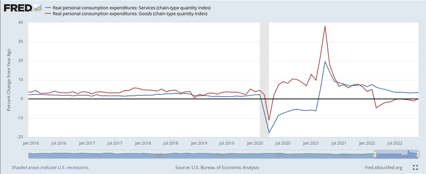 This situation caused a bit more inflation in the durable goods portion of the economy vs the service side of the economy. We all heard the stories of restaurants going under while at the same time, some businesses were doing incredibly well. This confused a lot of people because they didn’t know if the economy was doing really well or if we were going into a great depression 2.0.