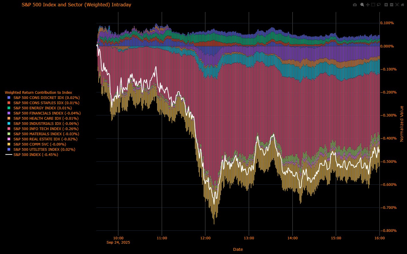Biggest drag: Information Technology (–0.26%), as the AI trade lost momentum.