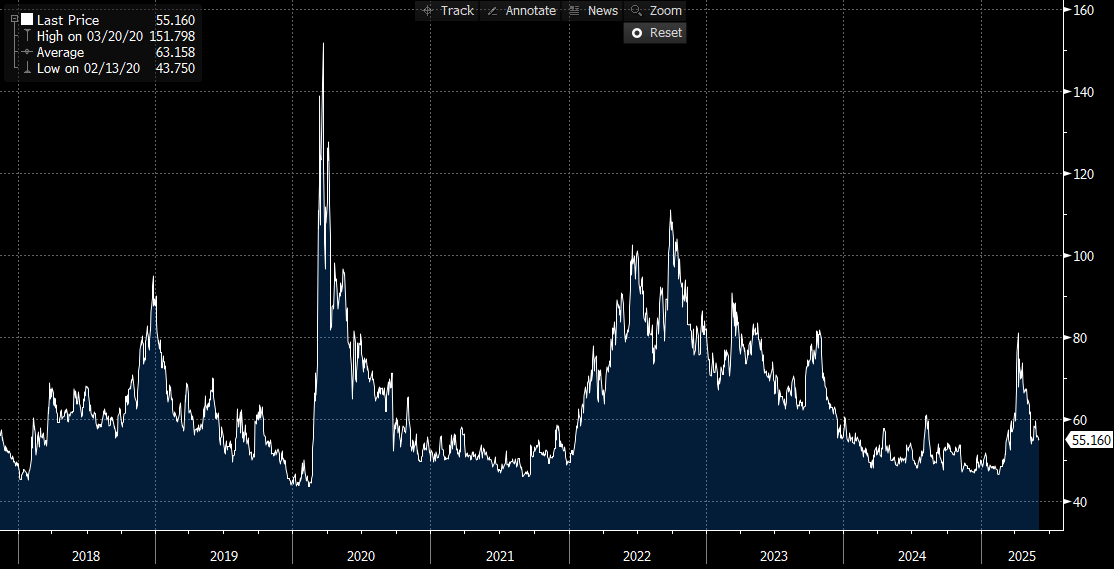 Current Spread: 55.16 bp (▲ ~0.2 bp d/d), reflecting slight widening. The current spread remains below the 5-year historical average (~63.2 bp), but indicates growing investor caution in response to recent weaker-than-expected economic data.