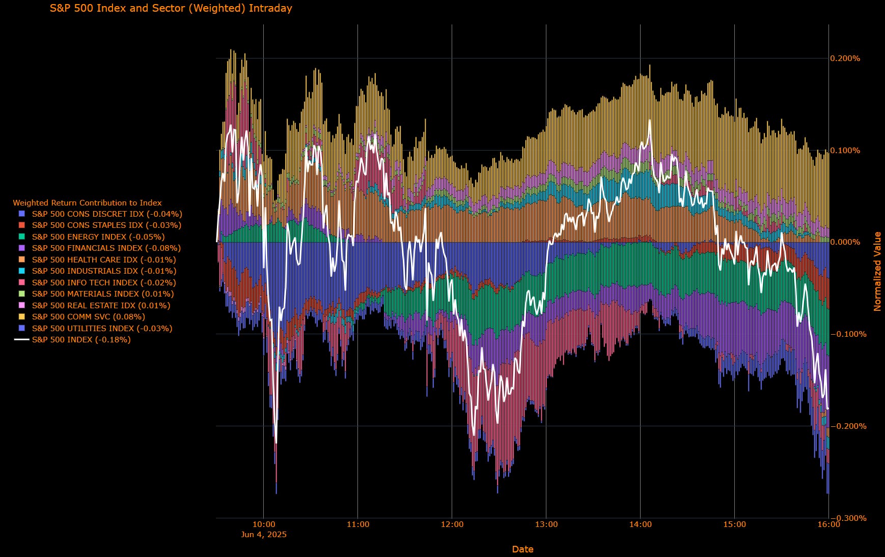 Communication Services (+0.08 pp) – Sole positive contributor, buoyed by investor rotation into defensive positioning amid broader market caution.