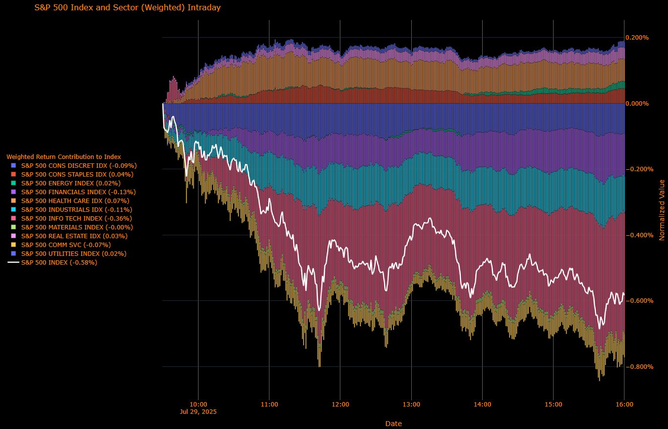 US Market Wrap: S&P Slides as Breadth Buckles, Risk Aversion Builds into Fed, Tariff, and Tech Storm