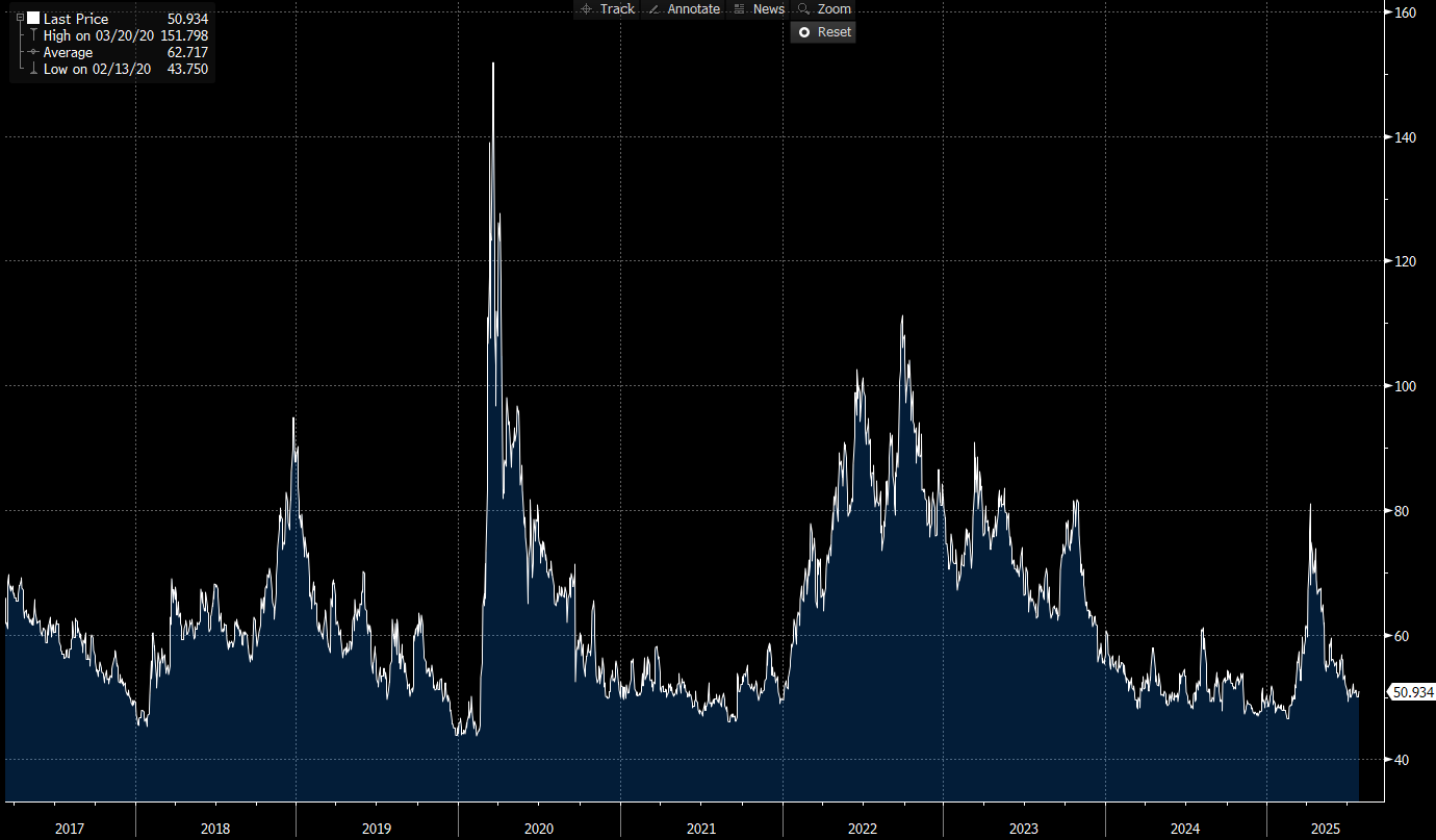 Current IG Spread: 50.93 bp | 5-Year Avg: 62.72 bp | COVID High: 151.80 bp | Cycle Low: 43.75 bp