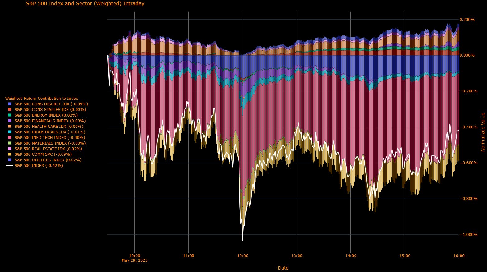 Health Care (+0.06 pp) – Best positive contributor today, benefiting from its defensive profile and lower sensitivity to macroeconomic risks.