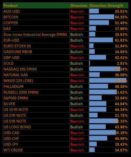 Here is a summary of all models and their directional strengths: