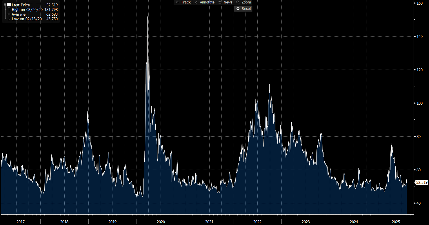 A 52 bp spread with a Fed board in flux, tariffs rolling out, and services stagnating? That’s not “too tight to touch,” but it is “too tight to ignore.”