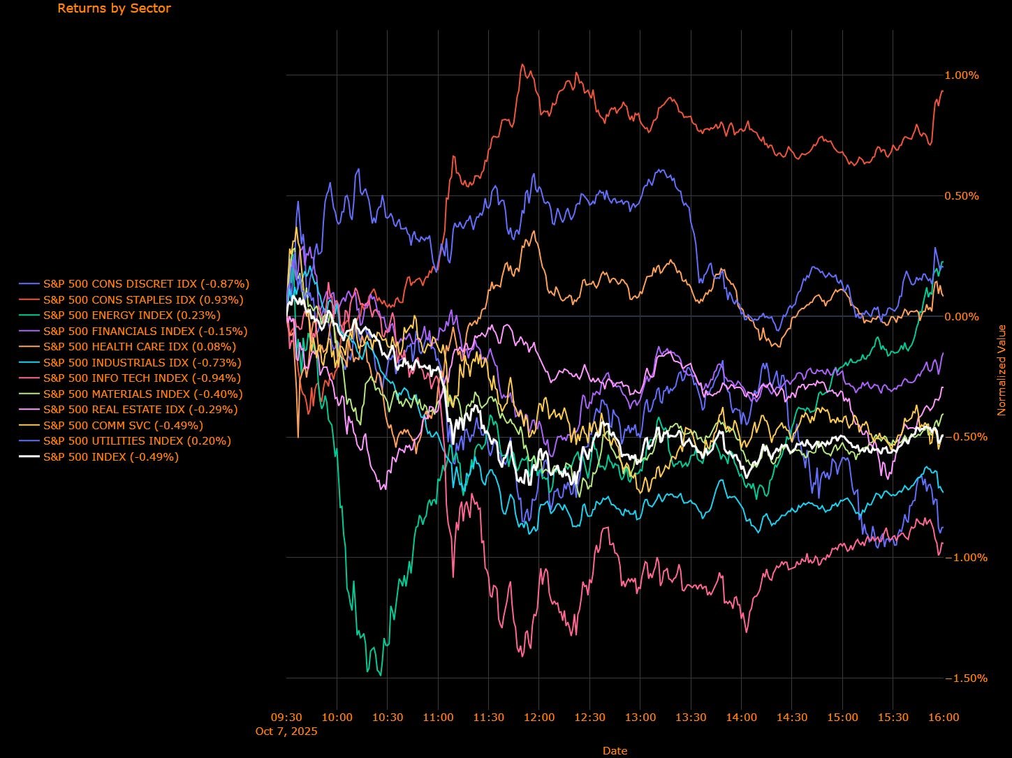 Winners: Consumer Staples (+0.93%), Utilities (+0.20%), Energy (+0.23%), Health Care (+0.08%)