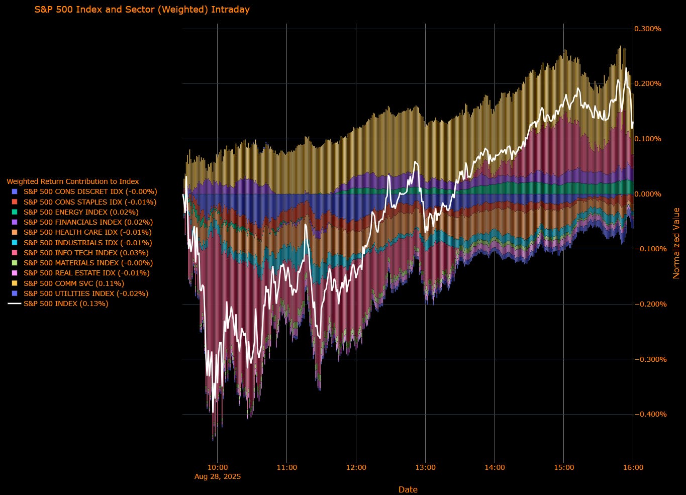 US Market Wrap: Narrow Green Day, Comm Services Does the Heavy Lifting; Curve Flattens Into PCE (S&P +0.13%)