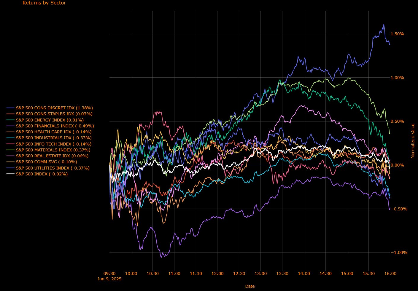 Consumer Discretionary (+1.38%) – Strongest performer, benefitting from optimism in consumer sentiment amid easing trade tensions.