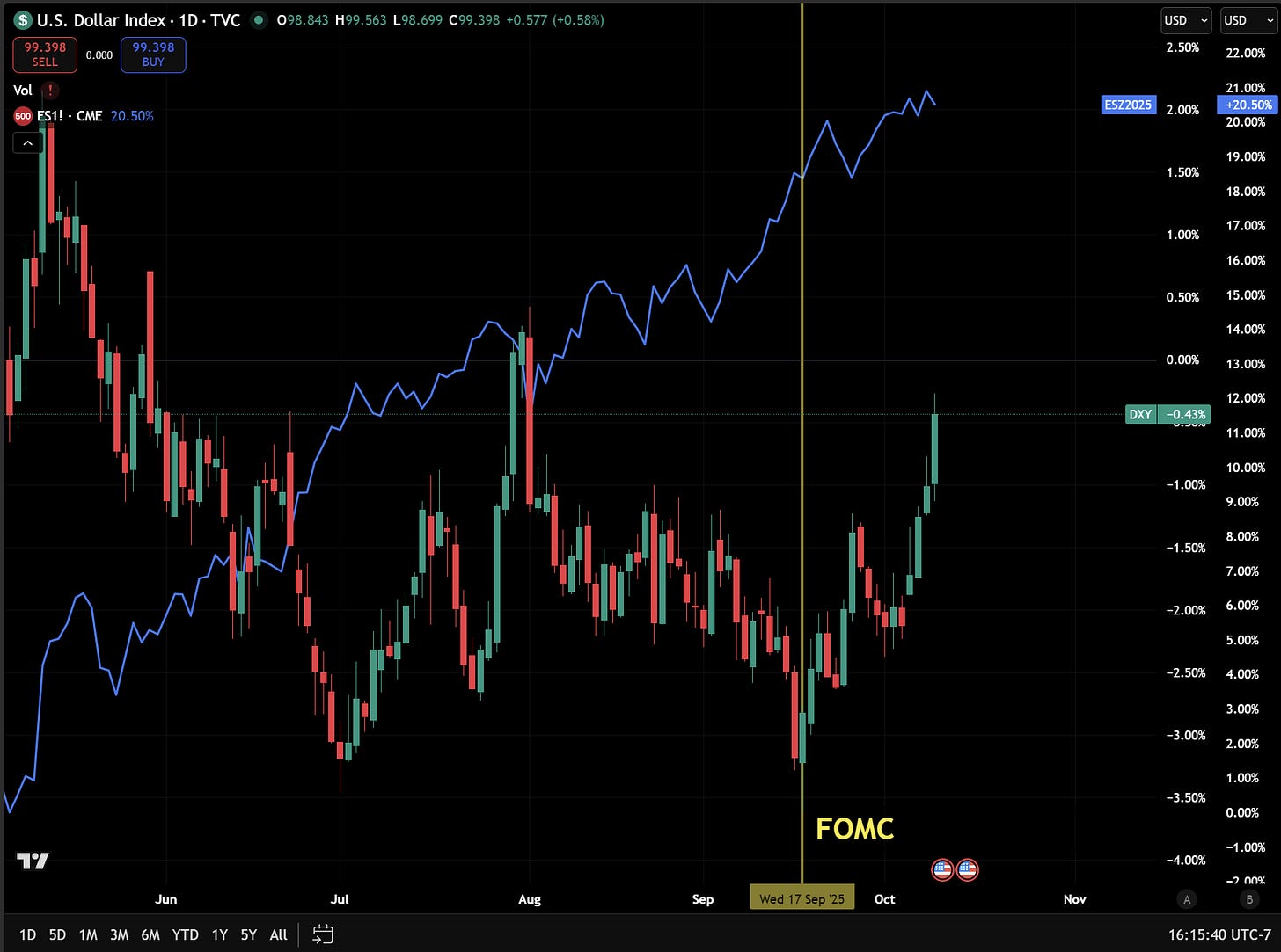 As we moved into FOMC, I explained the causal drivers behind the dollar and the potential for a bottom here: