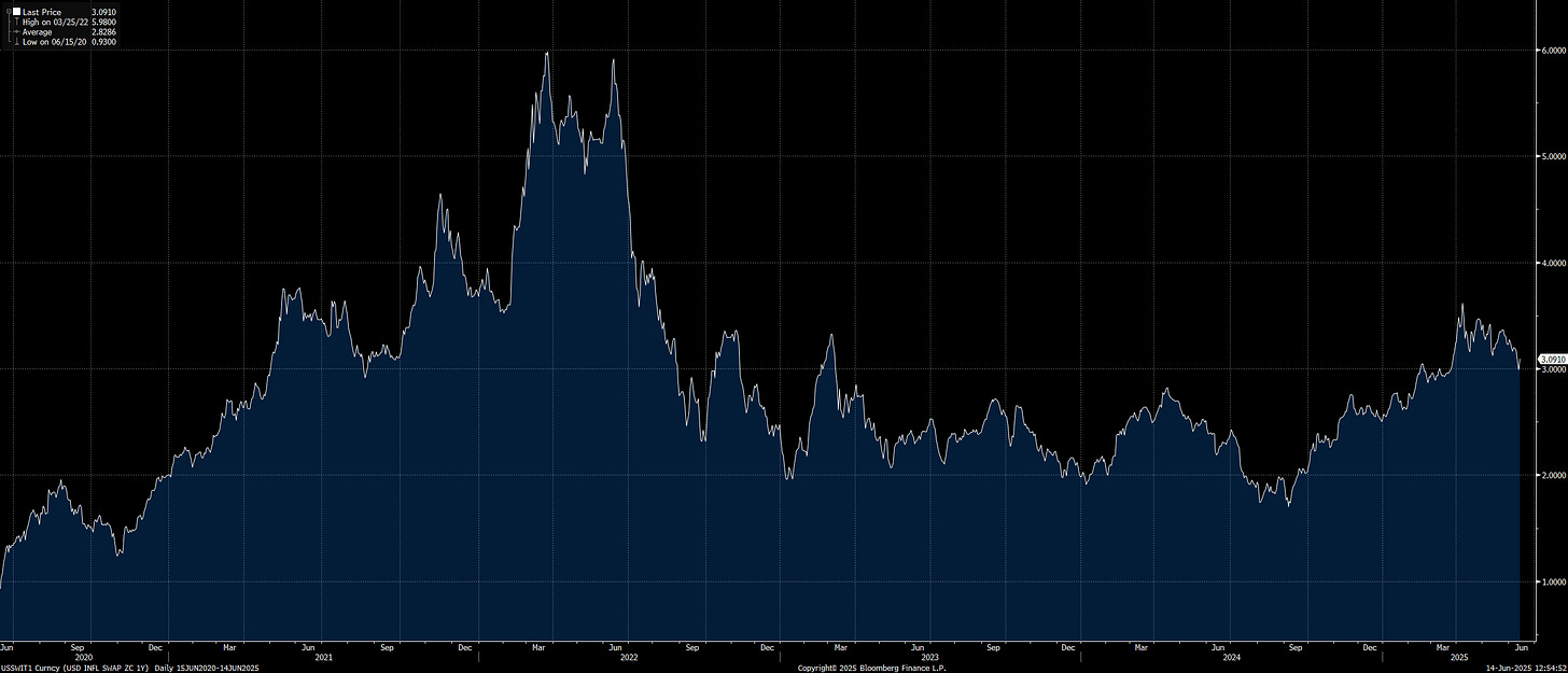 The geopolitical risk has a higher probability of making its way into food and energy prices than it does negatively impacting US growth. This is why the week ahead is actually very consequential because if the Fed makes the mistake of confirming the cuts on the forward curve OR even being dovish as a response to the CPI print and geopolitical risk, then we could begin opening some major downside for bonds.