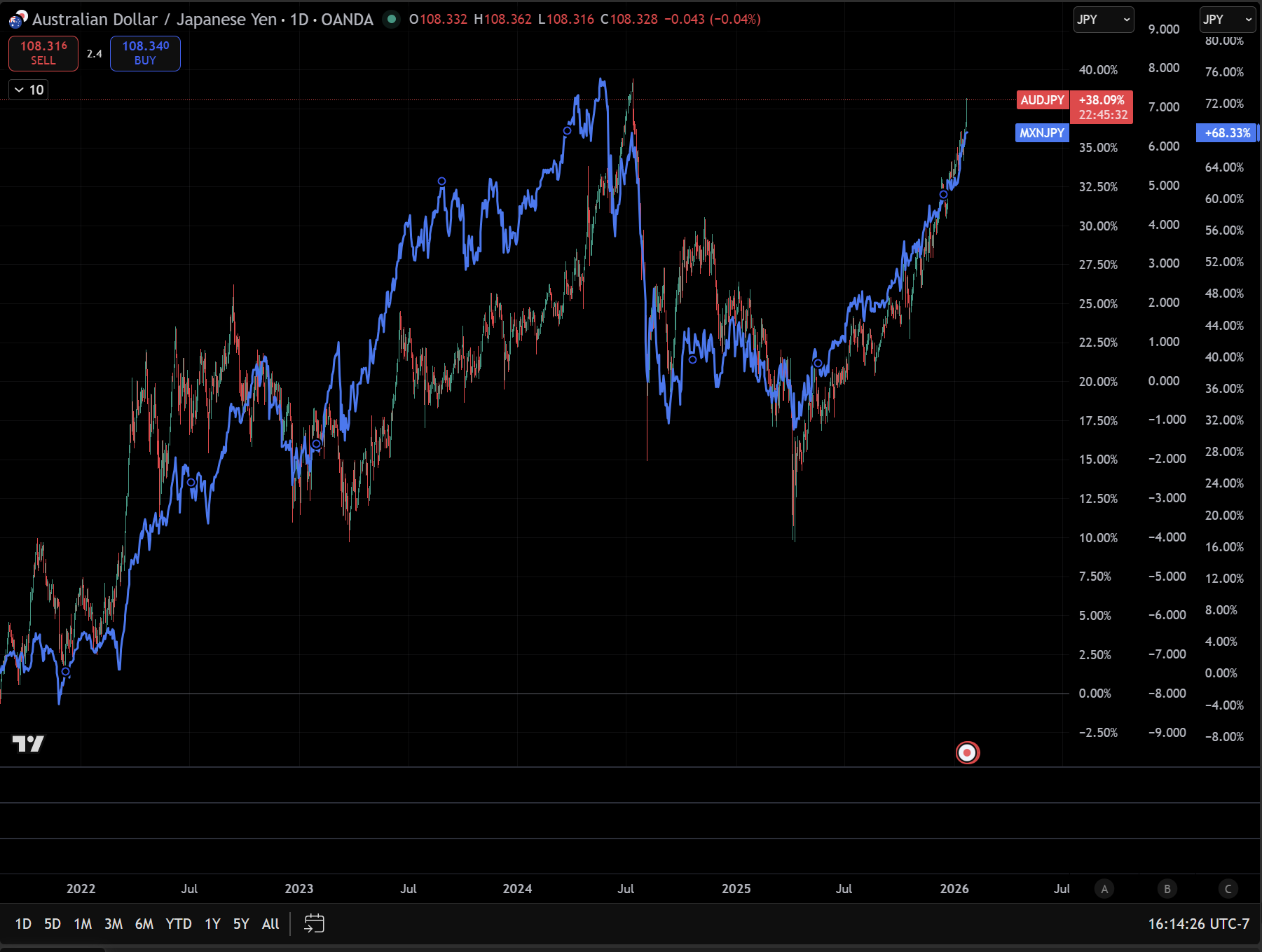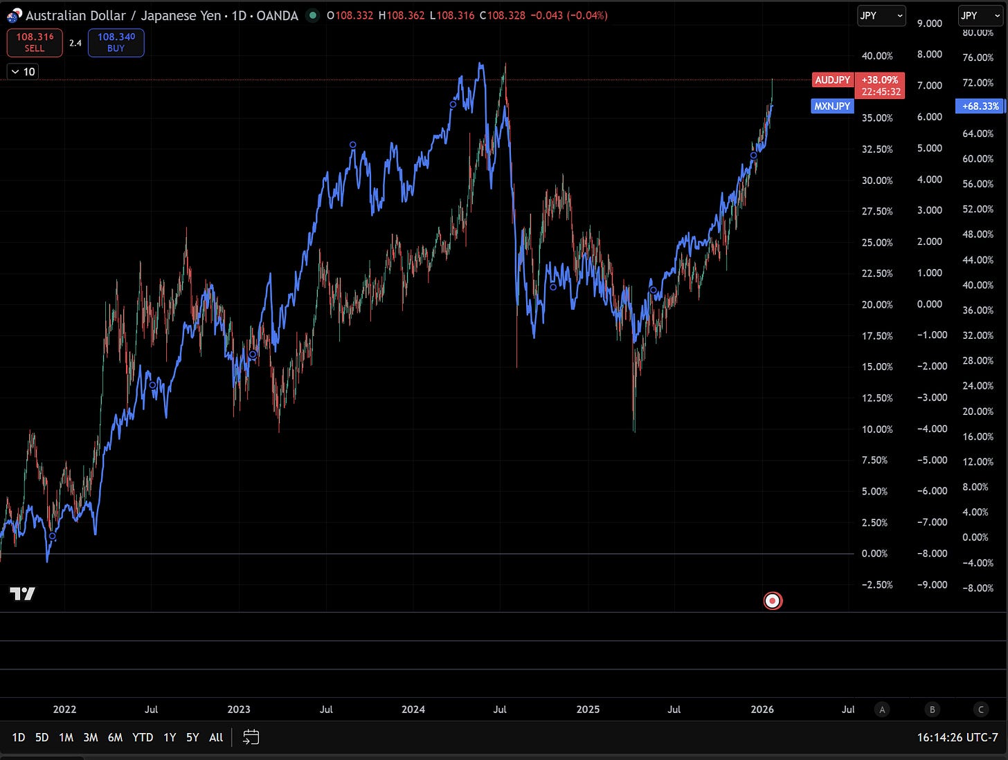What you need to realize is that when we have currency pairs like AUDJPY and MXNJPY rallying, it is a massive signal about risk-on behavior: