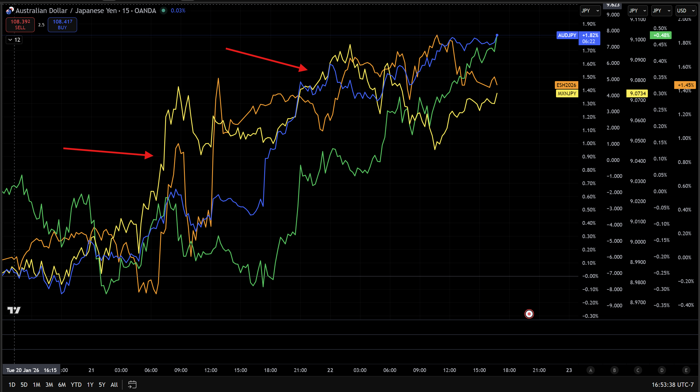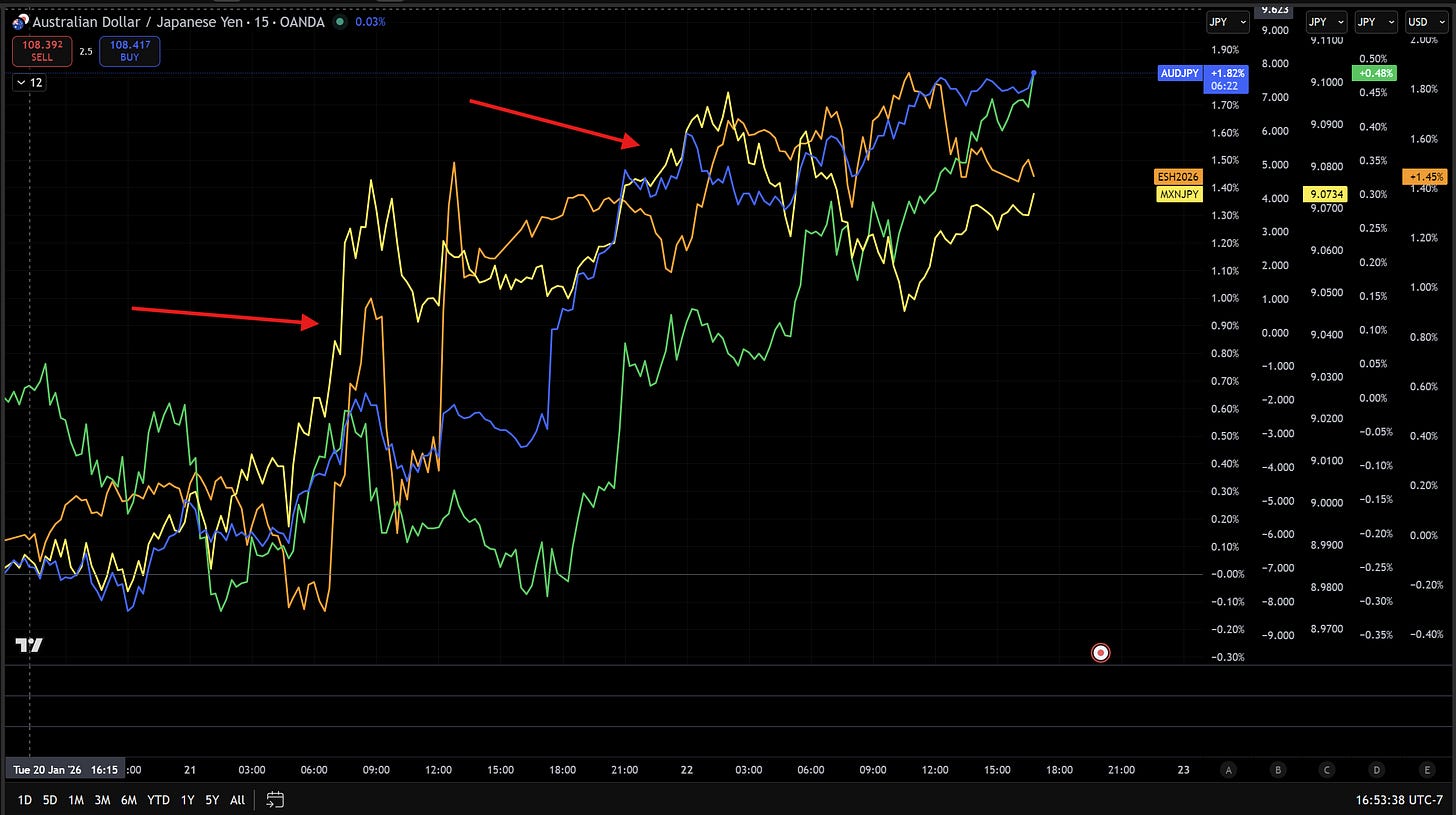 The FX moves are one of the representations we see with liquidity in the system, which is why these pairs against the Yen were leading ES futures multiple times in the session over the last 48 hours.