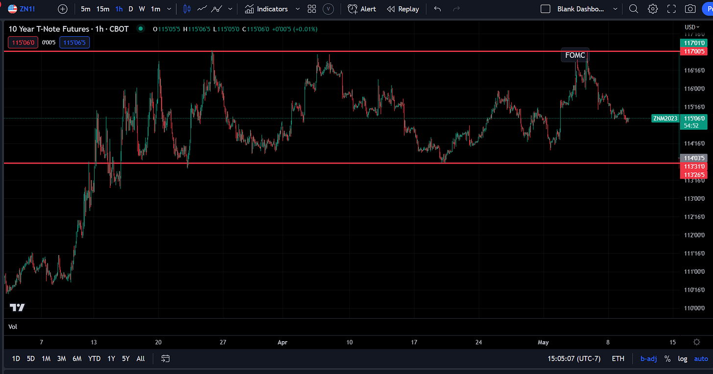Bonds have been mean reverting in this range as either growth and inflation surprises to the upside (think the NFP number last week) or credit risk spikes causing a bid in bonds.
