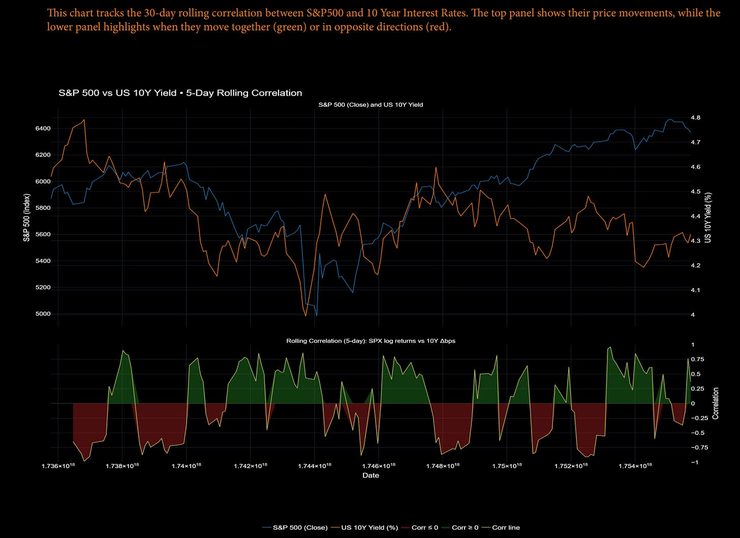 We can then gain more context for the two models above by looking at the outright chart and correlation of SPX to the 10-year, so we always know the context for WHERE we are: