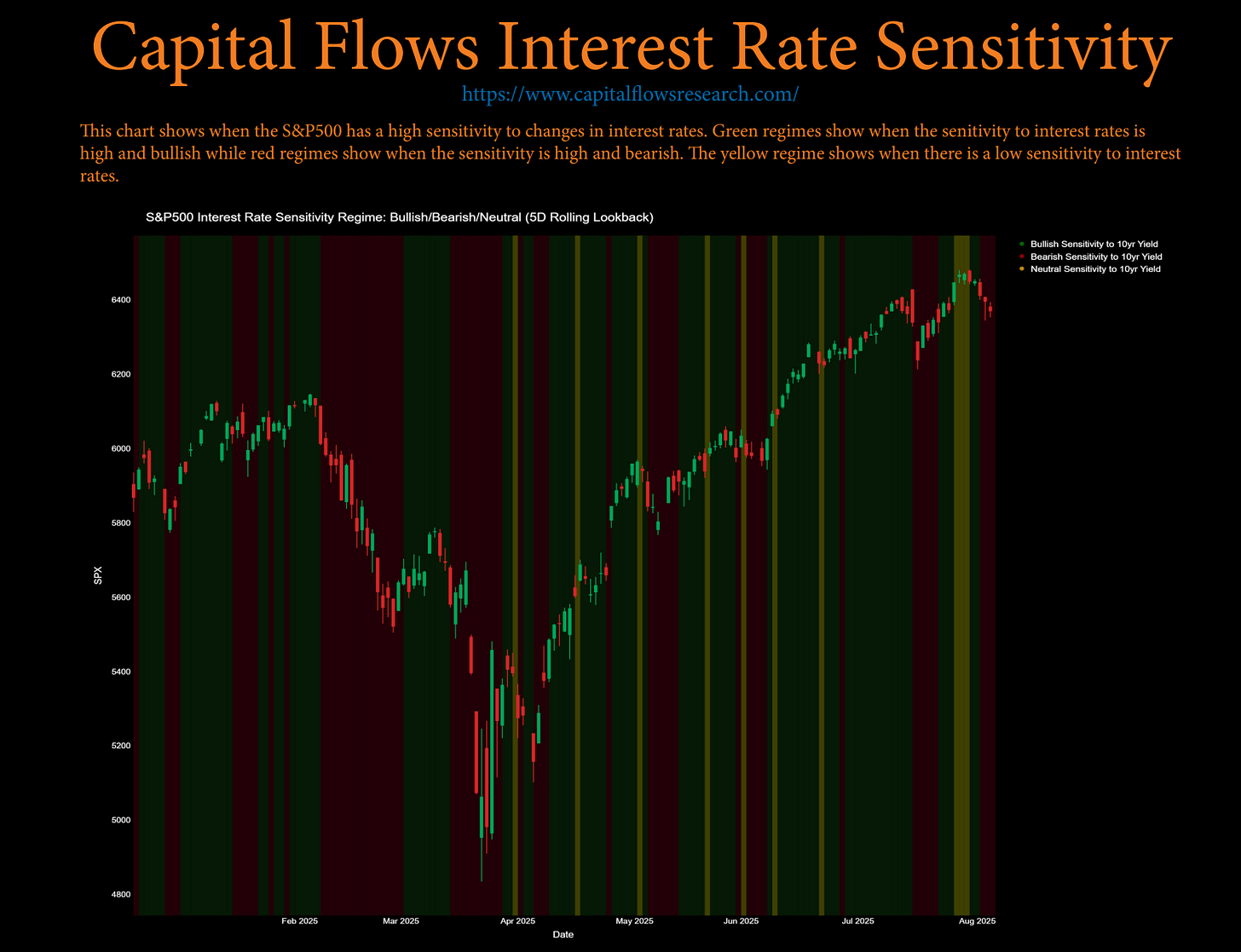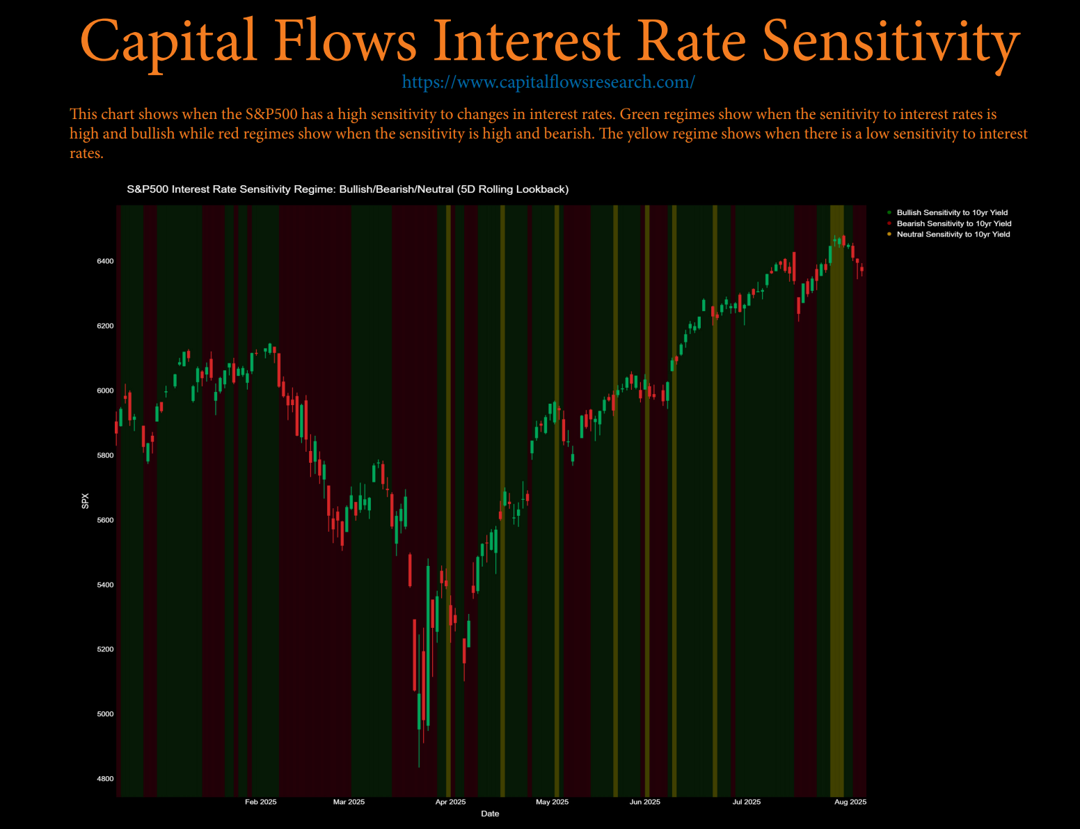 The model below takes interest rates and maps HOW they are impacting the S&P500 in either a bullish or bearish manner. In simple terms, are the current moves in interest rates helping push SPX up or down?