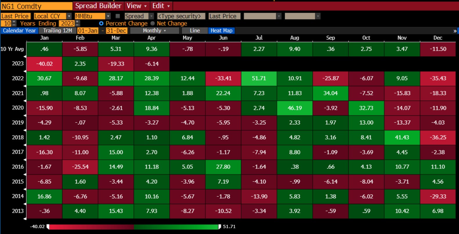 Seasonality in specific commodities can be a little more intuitive for people to understand because of the weather component. Here is nat gas.