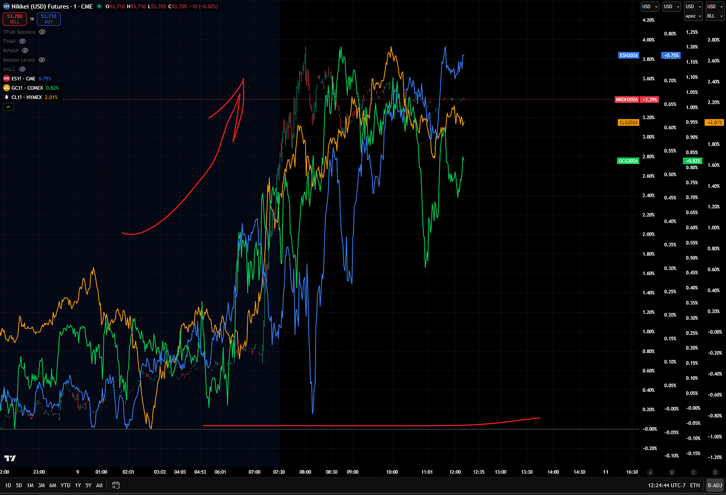 As a result, we saw the Nikkei lead the way and outperform the most as ES, CL, and GC all followed. Why is this happening? Because the liquidity changes in Japan impact the entire world.