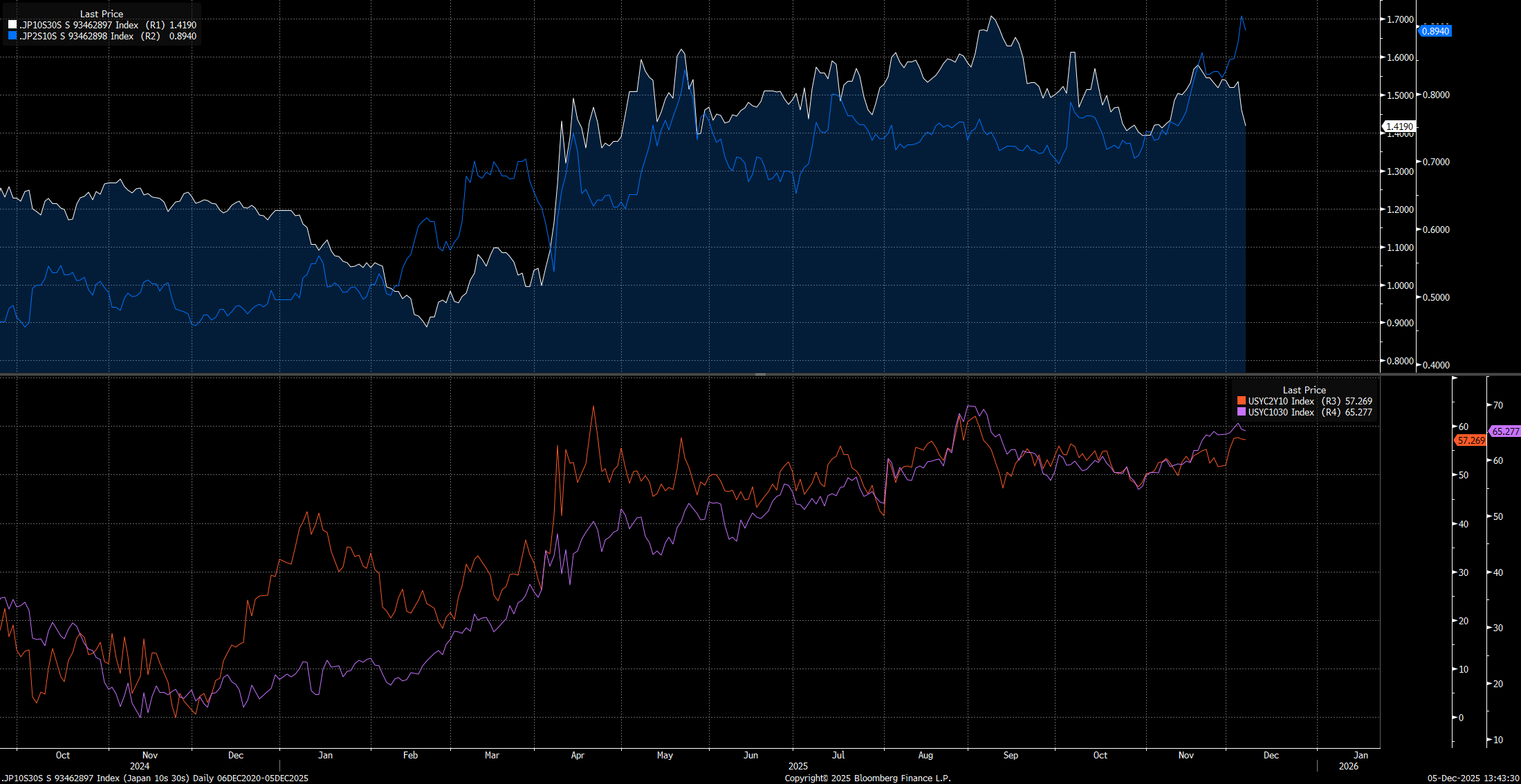 Once 10s30s and 2s10s in JGB yields begin to flatten more, this will likely be an indication that the impulse driving yields higher and the currency lower is beginning to fade.