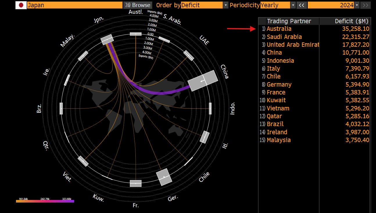 Japan is running a trade deficit with commodity-producing countries because it can’t produce them domestically. In simple terms, it is short commodities.