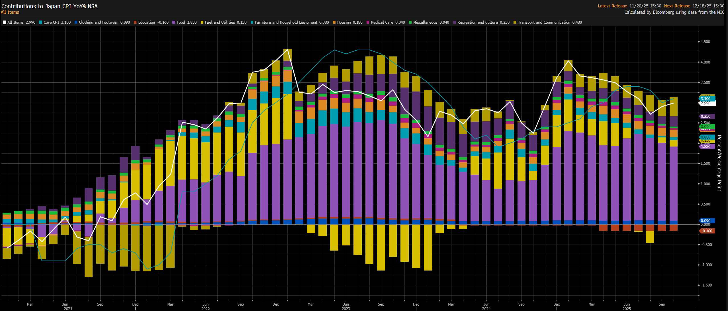 Main Idea: Japan’s inflation is running well above target, creating upward pressure on long-end yields (notice how large food inflation is). A reflexive loop has formed where a weaker yen is importing more inflation, pushing yields higher and driving the currency even lower.