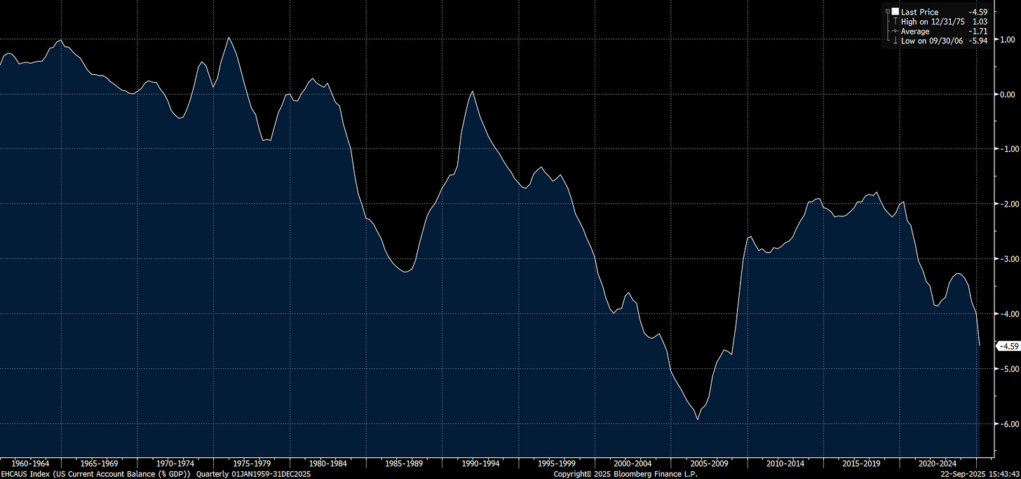 Where do they get the dollars to buy US assets? By exporting their goods and services to the US. This pushes the current account as a pecentage of GDP DOWN as the US imports more than they produce.
