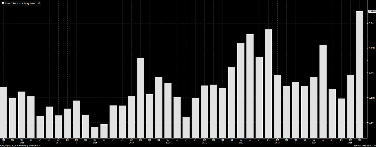 Since 2018, when the Fed kept real rates too high and triggered a major equity selloff, market participants have been fixated on every move the Fed makes. The story count alone has increased exponentially: