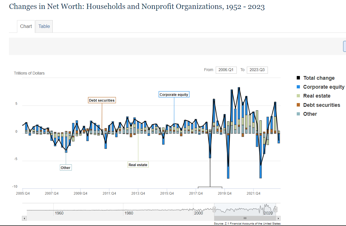 Notice how the net worth of households and nonprofits has changed during 2022 compared to 2008. This visualizes how dramatic of an impact an inflationary bear market can have on one’s net worth.