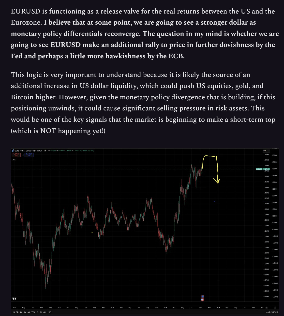 I laid out the initial logic of the dollar in the credit cycle report (link). We have seen a rally in EURUSD in confluence with the logic I laid out last week.