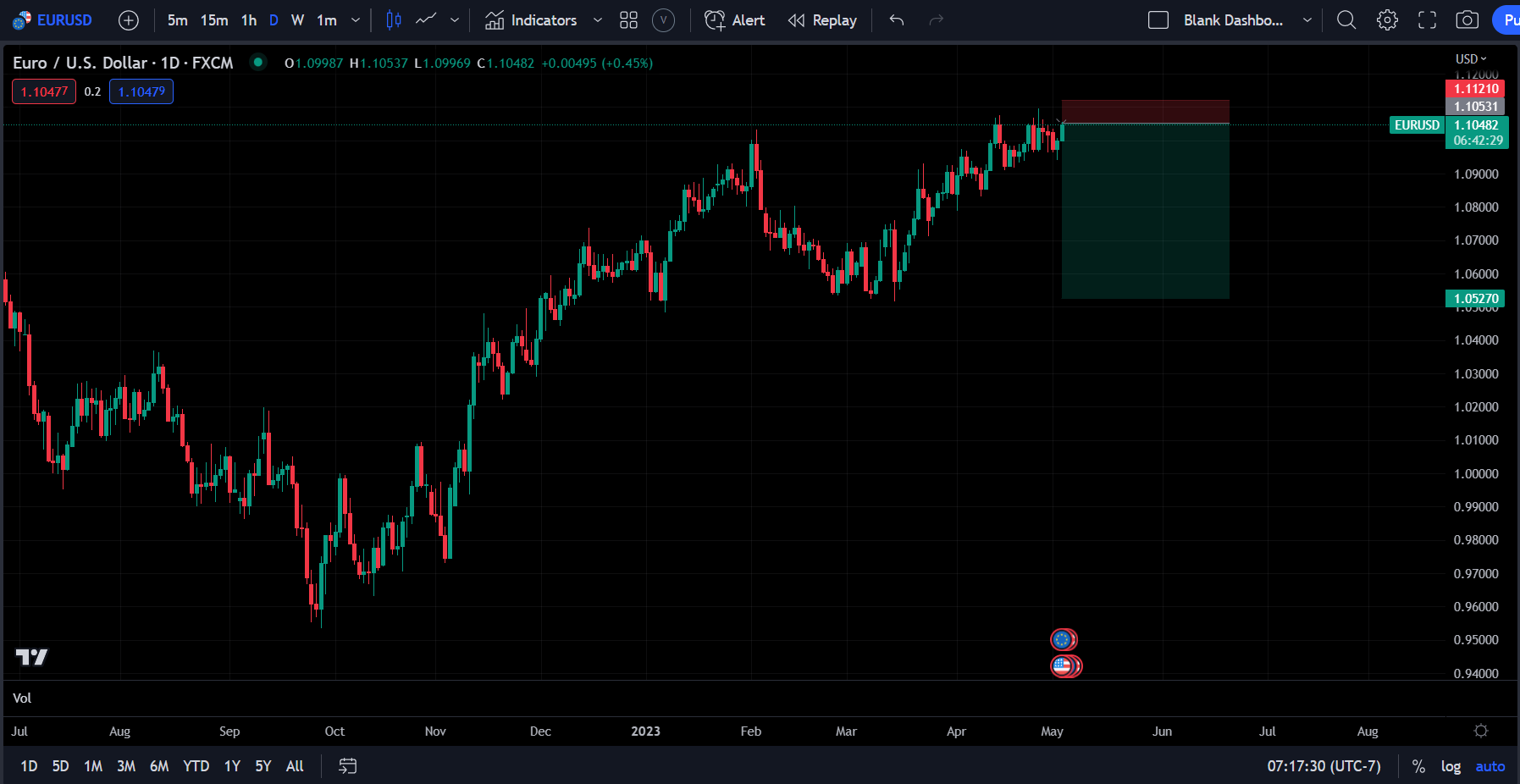 As I write this, the EURUSD pair is at 1.1047. I am opening a long USD / Short Euro Trade. *******Not investment advice