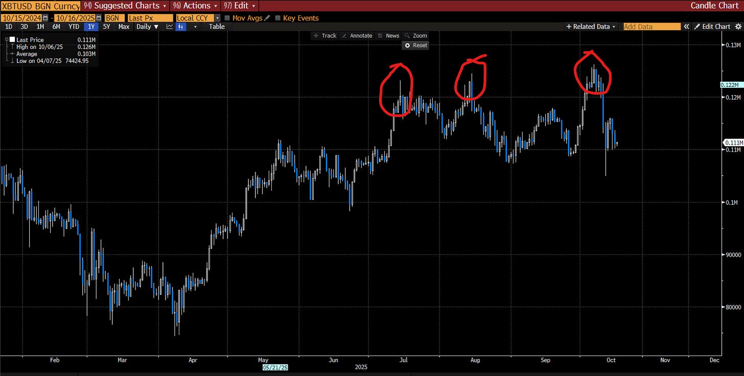 Most Bitcoin maxis display extreme confirmation bias when analyzing Bitcoin’s price action. When predicting its price, the key point to understand is that Bitcoin operates along the same risk curve as other assets. It correlates with equities because it is a risk asset. There is a clear reason gold has rallied so much year-to-date while Bitcoin has not. People can ignore it if they wish, but central banks are using gold as a reserve asset, not Bitcoin. If Bitcoin were being used as a genuine hedge in this kind of balance sheet capacity, it would be rallying as equities sell off, just as gold did in Q1 and during the recent tariff-driven equity declines.
