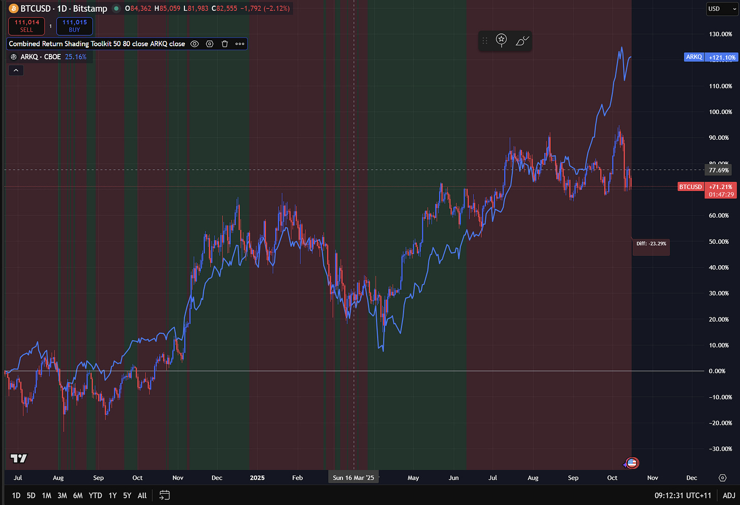 Capital is moving out the risk curve into things like ARKQ (tech and robotics ETF by Cathie Wood).