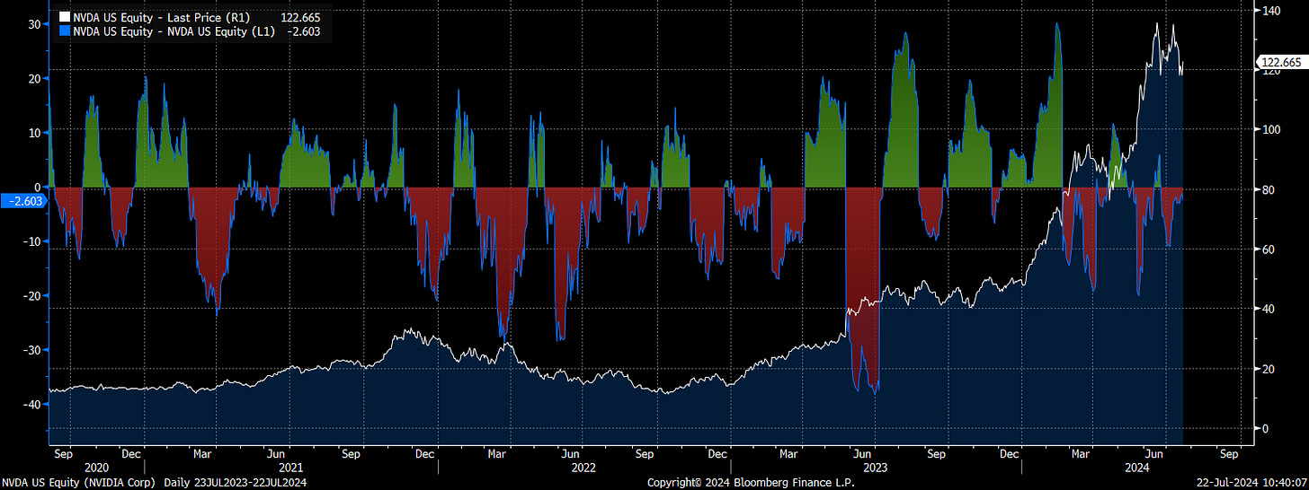 We are now pricing an implied vol discount in NVDA 0.00%↑ as positioning becomes marginally complacent about how wide the price can move: